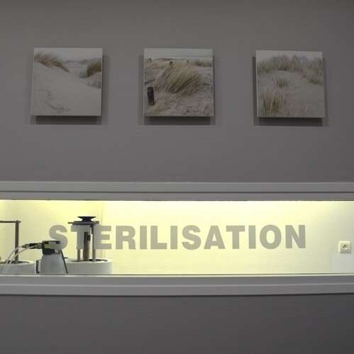 Doté de deux salles de soins modernes, notre cabinet respecte strictement les règles d'hygiène et d'asepsie : tous nos instruments sont stérilisés entre chaque patient.